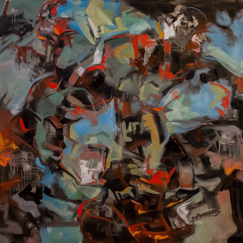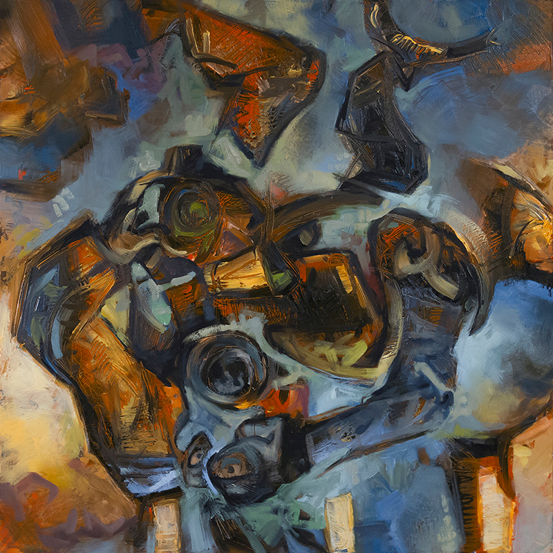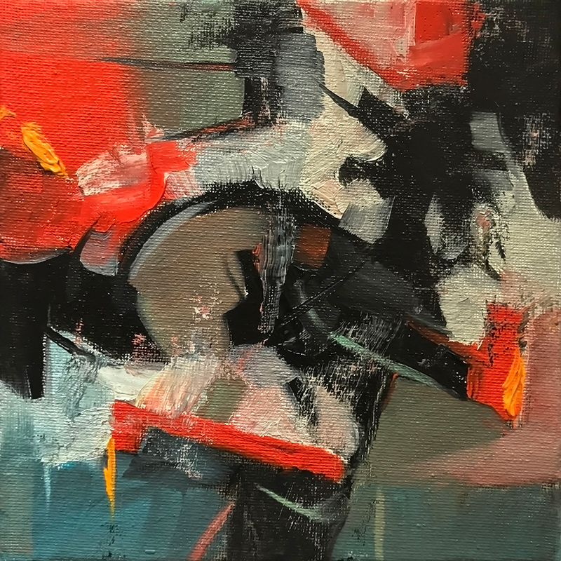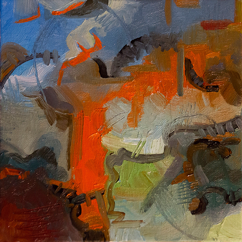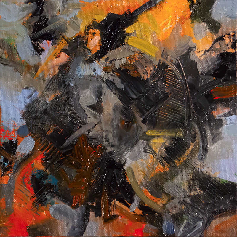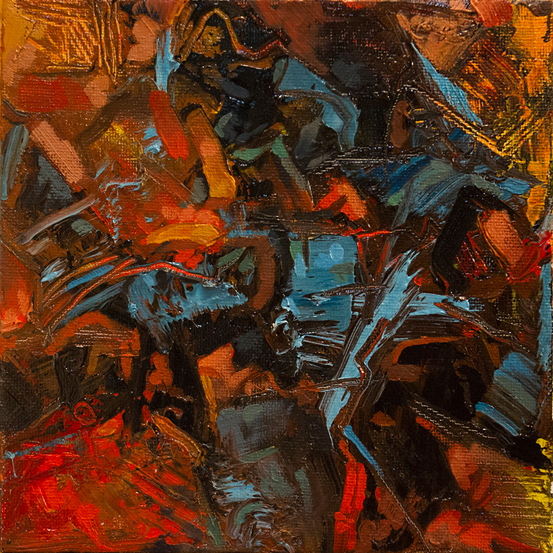 "Tiny Abstract #18 (Hell on Horseback)" Oil on Canvas board