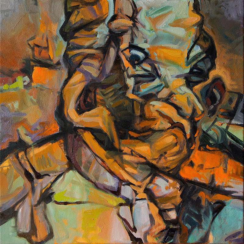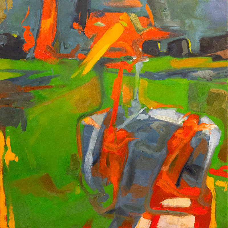 "Tiny Abstract #24 (Hug a Stickshift)" Oil on Canvas board